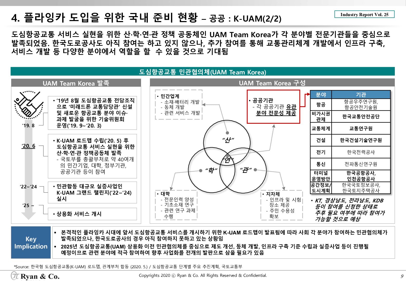 정부 차원에서도 플라잉카 상용화를 단순히 기술의 도입, 교통문제 해결을 위한 수단이 아닌 국가경제 신성장동력 중 하나로 각 부처는 물론 관계된 공공기관과 학계, 민간기업을 아우르는 협의체를 구성해 K-UAM로드맵을 수립하여 국가 차원에서 플라잉카 도입을 위한 준비를 적극적으로 하고 있음