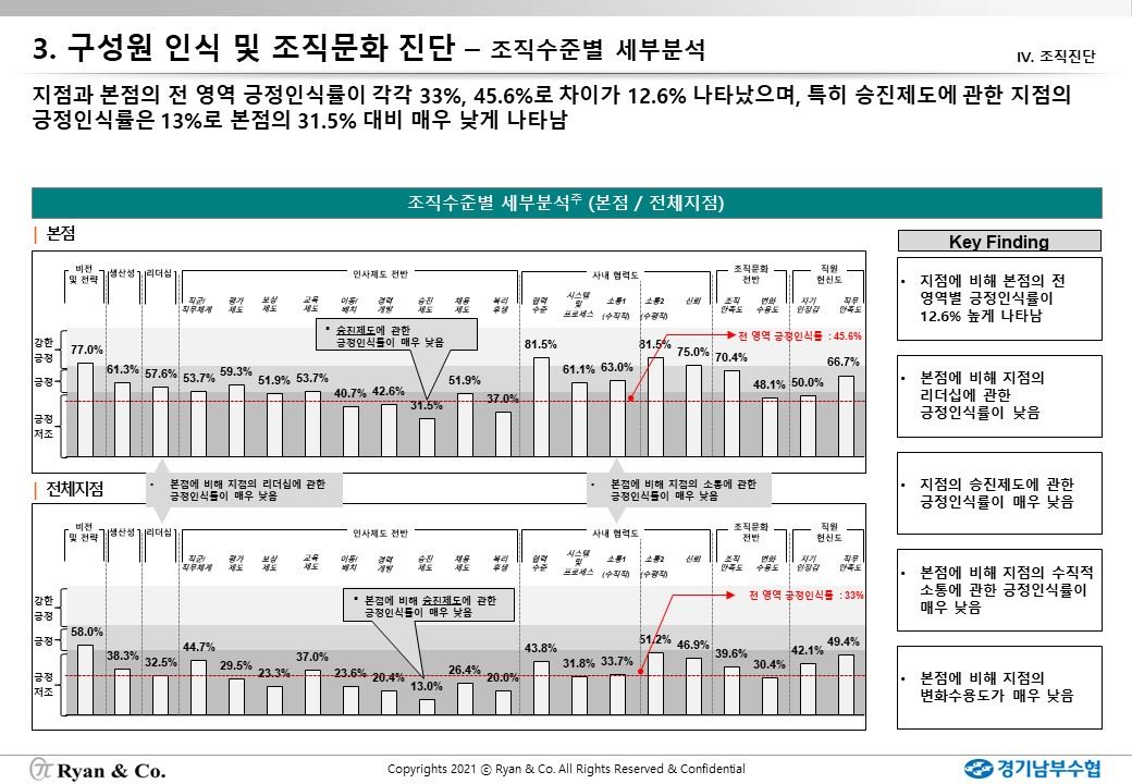 RNC는 한국전력, 코레일, 한전KND, 수협, 예탁결제원, 신용보증기금, 건강보험심사평가원, 해병대 등 조직 규모가 큰 공공기관 및 출연연의 조직문화 진단 프로젝트를 성공적으로 수행했습니다. 특히 현 조직문화에 내재화된 근원을 찾아내고 개선하는데 초점을 맞추어 일할 맛 나는 직장 문화를 만드는데 기여를 했습니다.